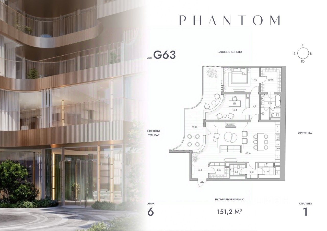 Представляем просторную 2-комнатную квартиру на 6 этаже Резиденций PHANTOM. Общая площадь лота составляет 151.2 кв.м. и включает мастер-спальню с собственной ванной, большую кухню-гостиную и гостевой санузел.