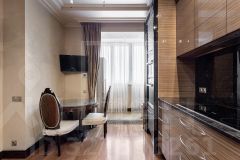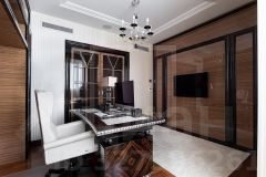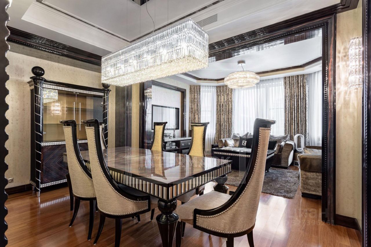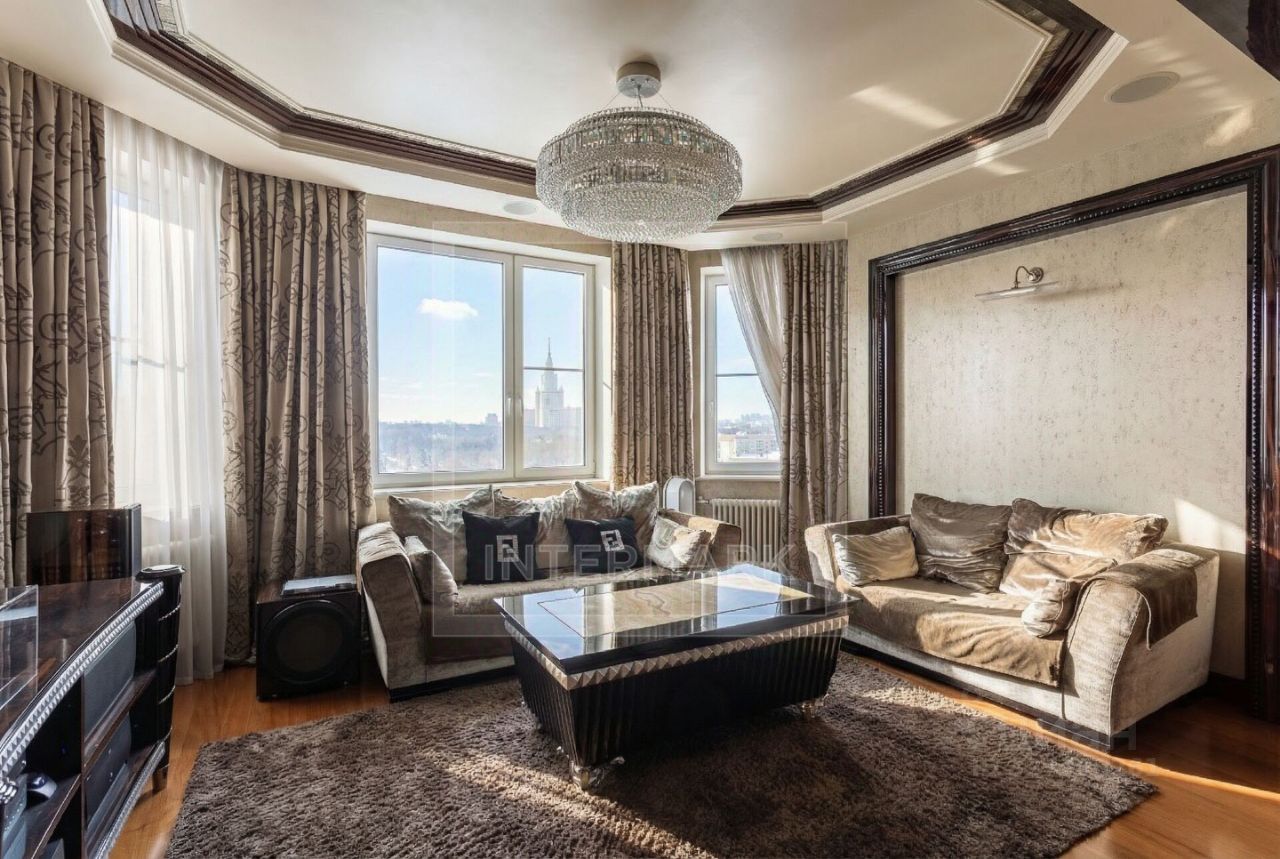 Интерьер выполнен в мягкой классике с элементами ар-деко. Продумана каждая деталь, в отделке использовались только дорогие качественные материалы, тактильно приятные и визуально благородные. Полная комплектация техникой Miele, утеплённые балконы и шумоизоляция всех помещений. Трёхсторонняя ориентация окон наполняет дом естественным светом с утра до вечера, а из каждой комнаты открываются панорамные виды на главные достопримечательности столицы: узнаваемый силуэт МГУ и зеленый массив Ботанического сада при университете, стройные небоскребы делового центра Москва-Сити.