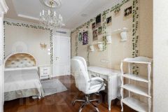 Жилое пространство комфортно спланировано: гостиная с шикарным эркером и видами на легендарный вуз, отдельная кухня, 4 спальни, кабинет, 2 ванные комнаты, гардеробная комната с окном.