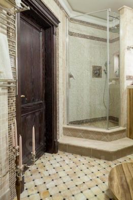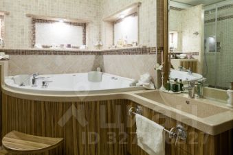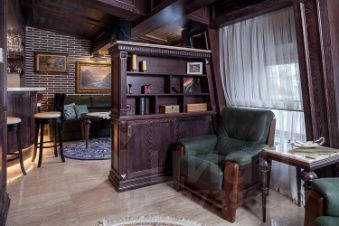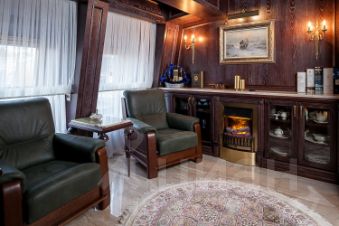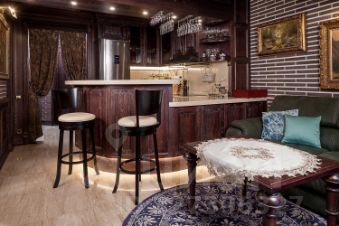 Комфортный микроклимат обеспечивается индивидуальной и общедомовой системами кондиционирования. Освещение создают изысканные бронзовые светильники из Италии, а расслабиться после долгого дня поможет глубокая гидромассажная ванна от чешских мастеров. Мебель из натуральной кожи и дерева подчеркивает статус и уют пространства. Кухня, стеновые и потолочные панели, а также часть мебели были изготовлены на заказ, идеально вписываясь в концепцию дизайна. Столешница, фартук и подоконники выполнены из натурального мрамора, добавляя интерьеру роскоши.
