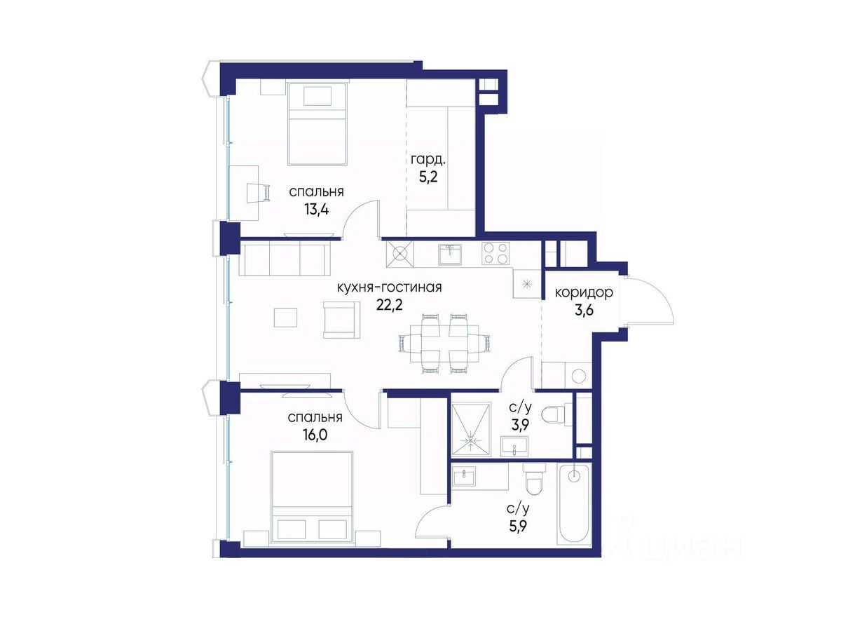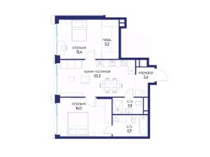 Продаётся 2-комн. квартира от застройщика: общая площадь 70.20 м², жилая 29.40 м², кухня 22.20 м², 8-й этаж, жилой квартал "Остров 14", корпус 6 (секция 1). Срок сдачи: 2 квартал 2029 года.