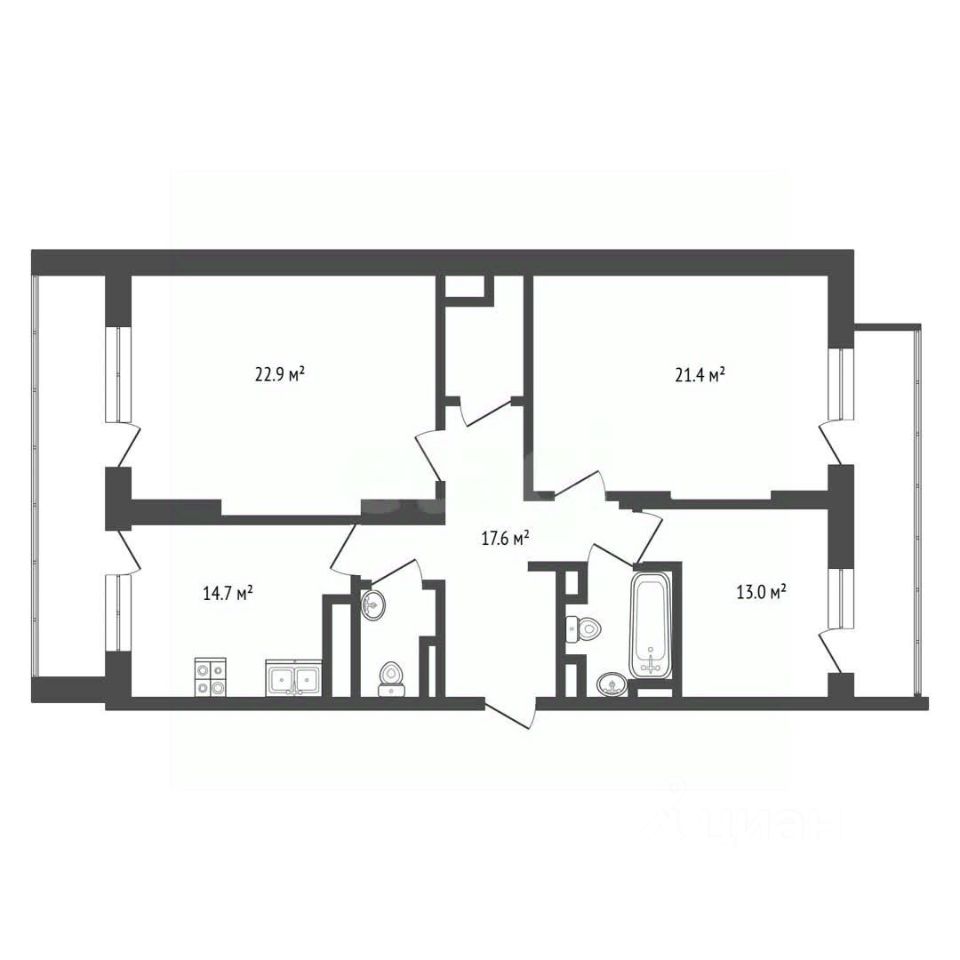 Из каждой комнаты есть выходы на лоджии, которые также можно объединить с жилым пространством.