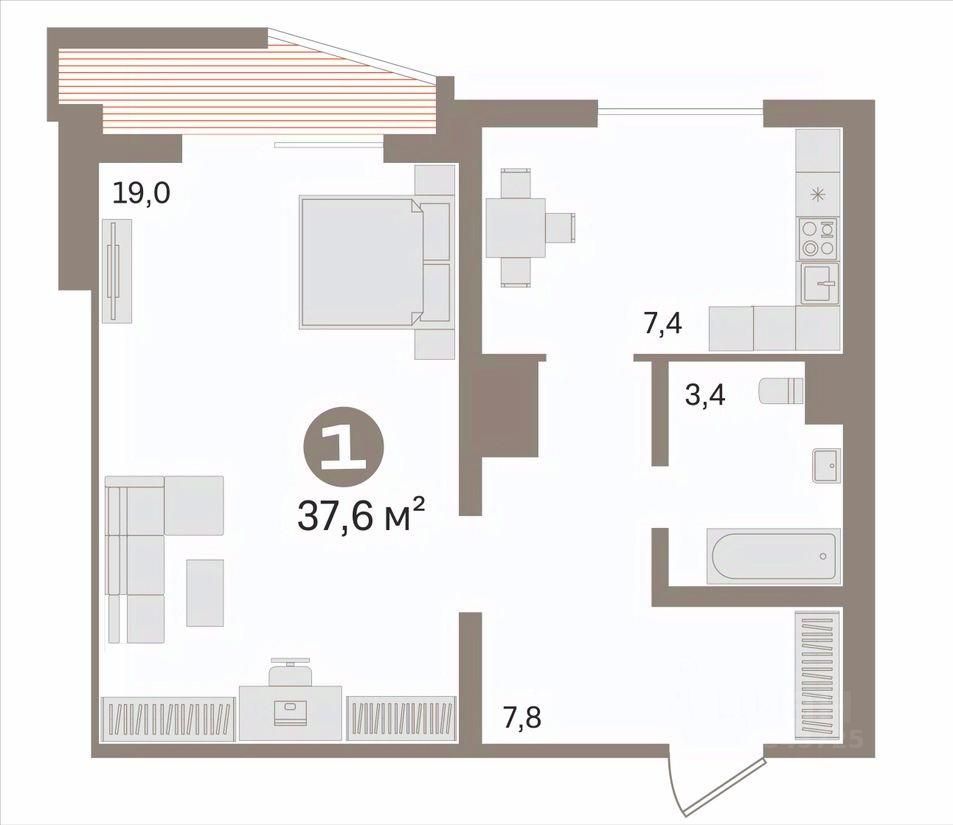Кухня, спальня, совмещенный санузел, застекленный балкон.