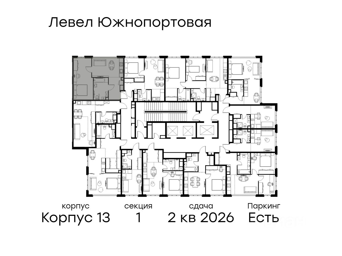 В северной части района Печатники продается 2-комнатный апартамент площадью 45.20 кв.м без отделки. Апартаменты расположены на 4 этаже 23-этажного корпуса 13 в жилом комплексе комфорт-класса Левел Южнопортовая (компания Level Group/Левел групп).