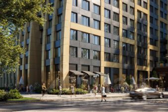 На первых этажах жилого комплекса откроются магазины, салоны красоты, фитнес-центр. Для детей строятся собственные детский сад и школа.