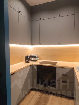 Кухня оснащена современной техникой: встроенная посудомоечная машина, холодильник, духовой шкаф, варочная поверхность, вытяжка, измельчитель пищевых отходов, системы защиты от протечек воды и фильтр для воды.
