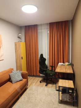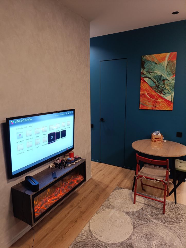 В квартире тщательно спланирован каждый уголок. Здесь есть 2 изолированные комнаты и просторная кухня-гостиная площадью 21.3 кв.м, которая разделена на три полноценные зоны: кухня, гостиная и комфортное рабочее место. В гостиной зоне установлен электрокамин — уютный очаг для семейных вечеров, который наполняет интерьер теплом и атмосферой.