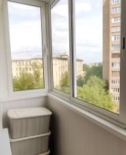 в хорошем состоянии, с/у после капремонта, выровнены стены, потолки, полы, свежие обои, новая качеств. вход. дверь, застеклен балкон. Окна на восток, на улицу.