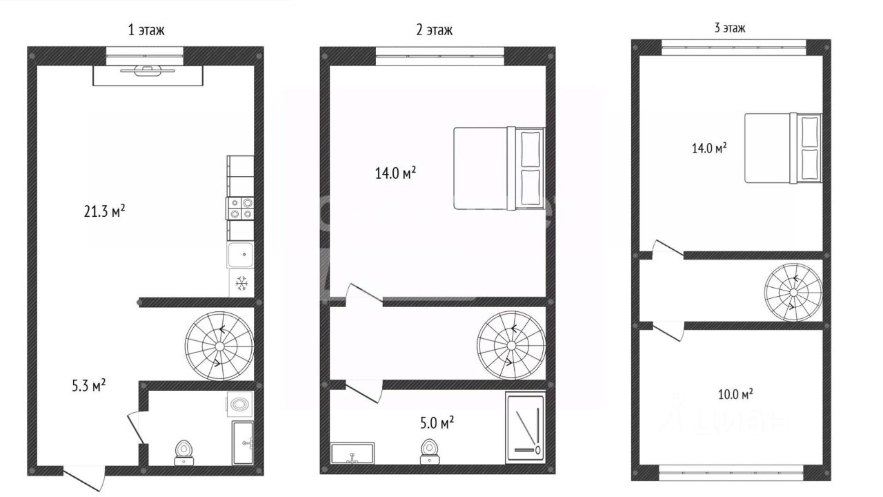 Многоуровневая планировка: Трехэтажные апартаменты с двумя отдельными спальнями и возможностью использовать третью комнату по любому назначению.