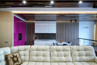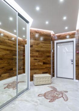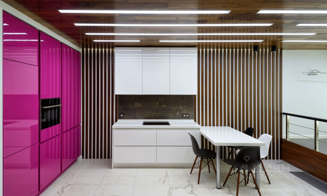 В квартире продуман каждый сантиметр: без узких мест и мертвых зон, понятная эргономика и достаточный объем воздуха. В отделке природные фактуры и чистота пространства: натуральное дерево, итальянская плитка, трёхслойная штукатурка, скрытые системы хранения и обогрева, интегрированная премиальная техника. Многоуровневый свет во всех помещениях (общий, акцентный, контурный) интерьер одинаково хорошо выглядит и днём, и вечером.