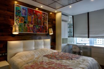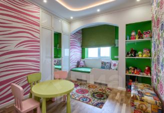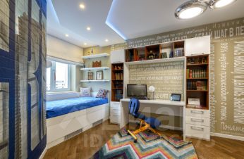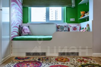 Две детские в своих характерах, но в общем стиле квартиры: встроенная мебель, много хранения, в одной установлен полноценный спортивный уголок. Панорамы на Нагатинский полуостров и изгибы Москвы-реки. При необходимости комнаты минимальными усилиями адаптируются под любой возраст и пол.