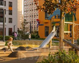 В проекте предусмотрена медленная зона для электросамокатов — с 7 утра до полуночи при въезде на территорию квартала скорость электросамокатов автоматически снижается до 15 км/ч. Артикул 931687 (Застройщик АО "Специализированный застройщик "Волжский парк"")