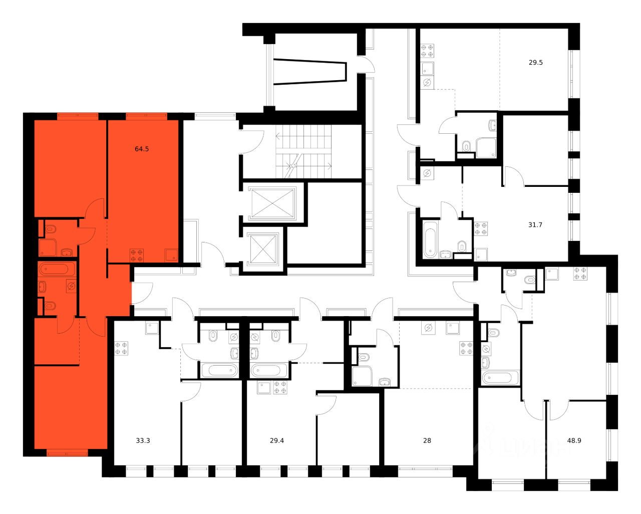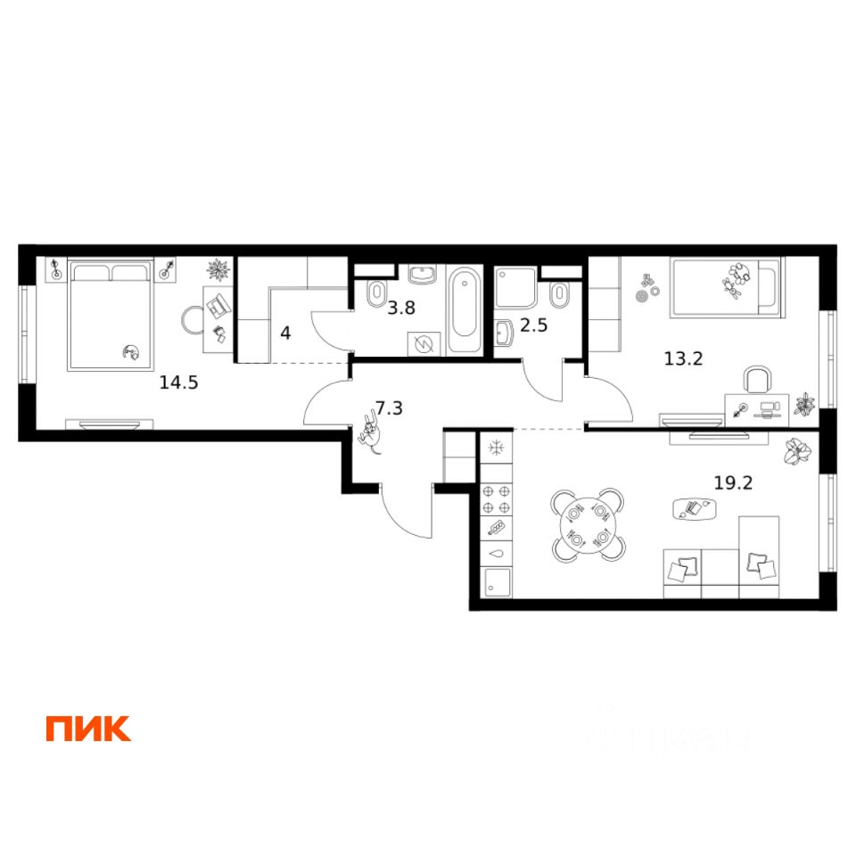 Продаётся 2-комн. квартира площадью 64,5 кв.м на 2 этаже 12 этажного дома (Корпус 2.3, Секция 3) проекта ПИК Москворечье. Светлый просторный подъезд на уровне земли, функциональная планировка, большие окна, c отделкой.