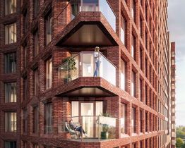 Лобби выполнены в стиле современного минимализма. В отделке использованы долговечные материалы с выразительной фактурой: кирпич сочетается с мраморным бесшовным полом из наливного материала терраццо, гладкой плиткой и стеклом. Для автовладельцев будет доступен подземный паркинг.