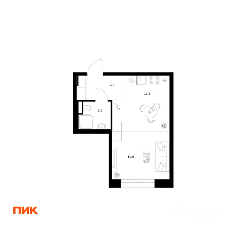 Продаётся квартира-студия площадью 29,5 кв.м на 12 этаже 12 этажного дома (Корпус 2.3, Секция 3) проекта ПИК Москворечье. Светлый просторный подъезд на уровне земли, функциональная планировка, большие окна, c отделкой.