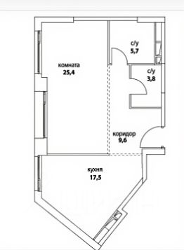 Большая однокомнатная квартира с 3-мя окнами и с возможностью сделать 2 спальни.