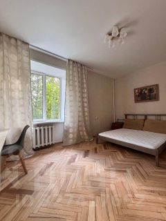 Все три комнаты — изолированные, 17,5 - 13,7 - 10,5 м2, кухня 8,8м2. Окна выходят на спокойную, тихую и зеленую сторону, во внутренний двор (на Дом Профсоюзов).