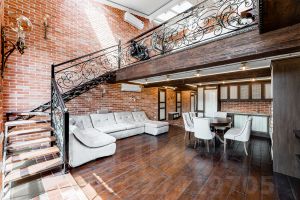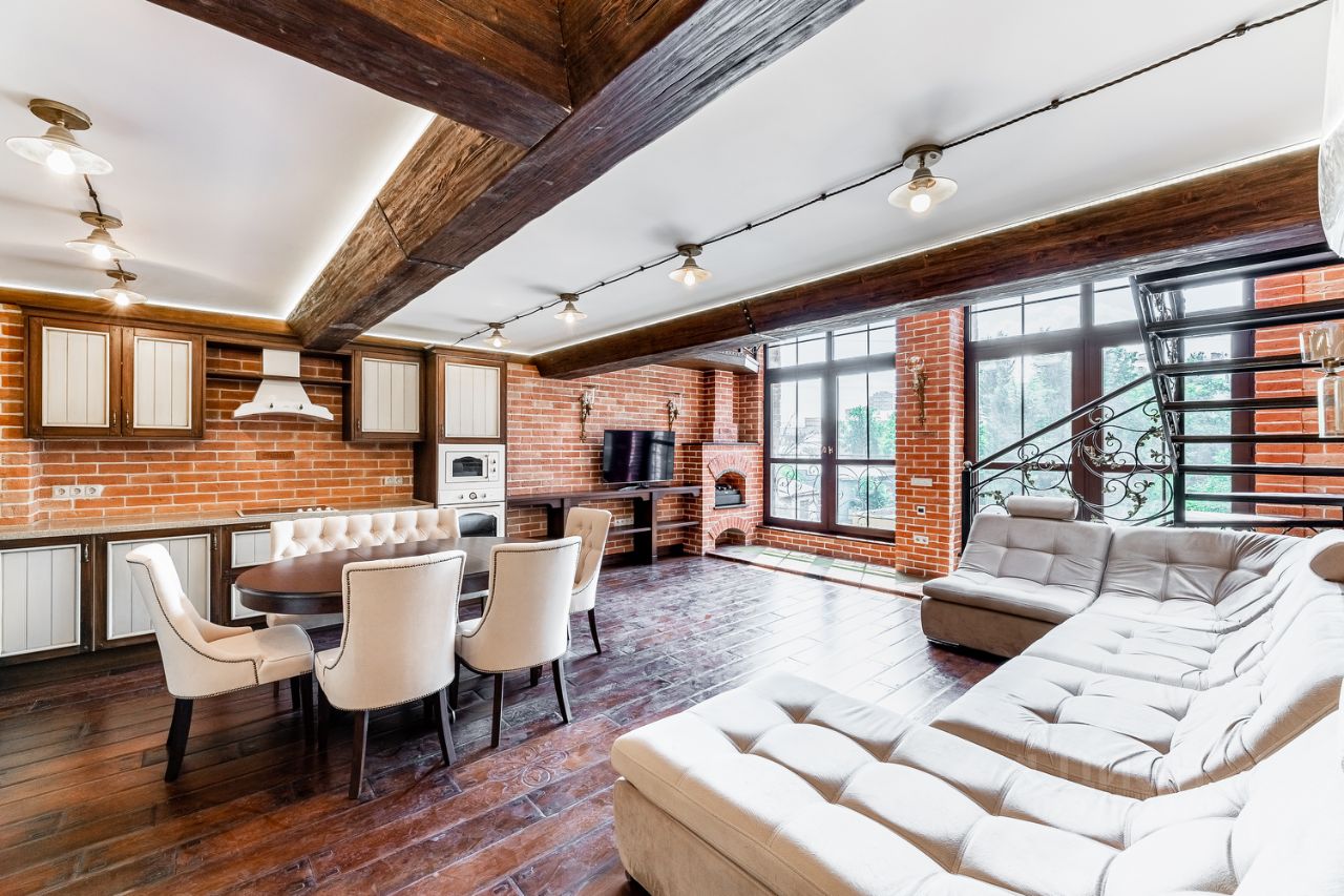 ID 41061. Настоящий 3-уровневый лофт в клубном доме. В отделке лофта использованы натуральный кирпич, испанская плитка, натуральное дерево, ковка ручной работы, стекло и бронза. 10 мансардных окон с системой открывания и полного затемнения. Лестницы и полы из массива дуба, итальянская мебель и сантехника, новая бытовая техника лучших производителей, сплит-системы с охлаждением, подогревом забором и фильтрацией наружного воздуха, тёплые полы, конвектора отопления с электронной системой управления, камин, система вентиляции, высокоскоростной интернет 5G, видеодомофон. Общая площадь: 122 кв. м. Планировка: огромная гостиная-столовая, 2 ванные комнаты, спальня, просторный кабинет, гардеробные комнаты. 2 окна в пол выходящих в тихий зелёный двор.