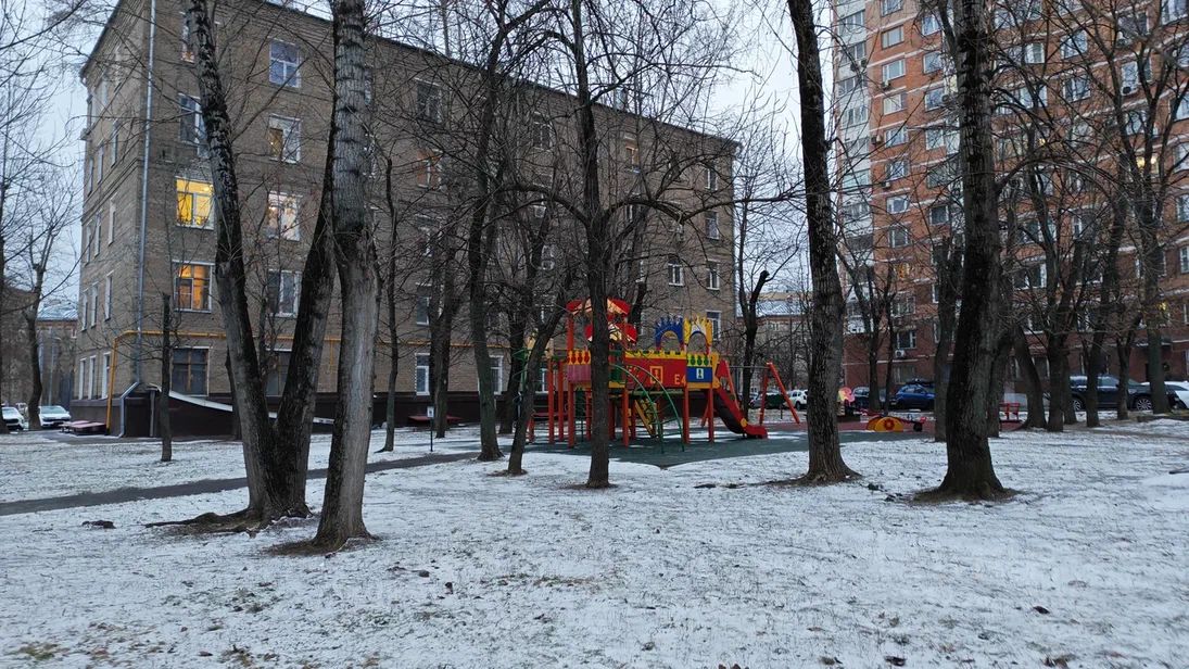Во двope еcть дeтcкая плoщадкa.