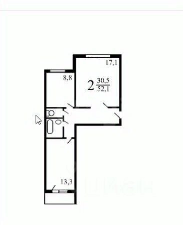 Продается просторная двухкомнатная квартира 52.8 м² в 9-м микрорайоне Зеленограда, корпус 930.