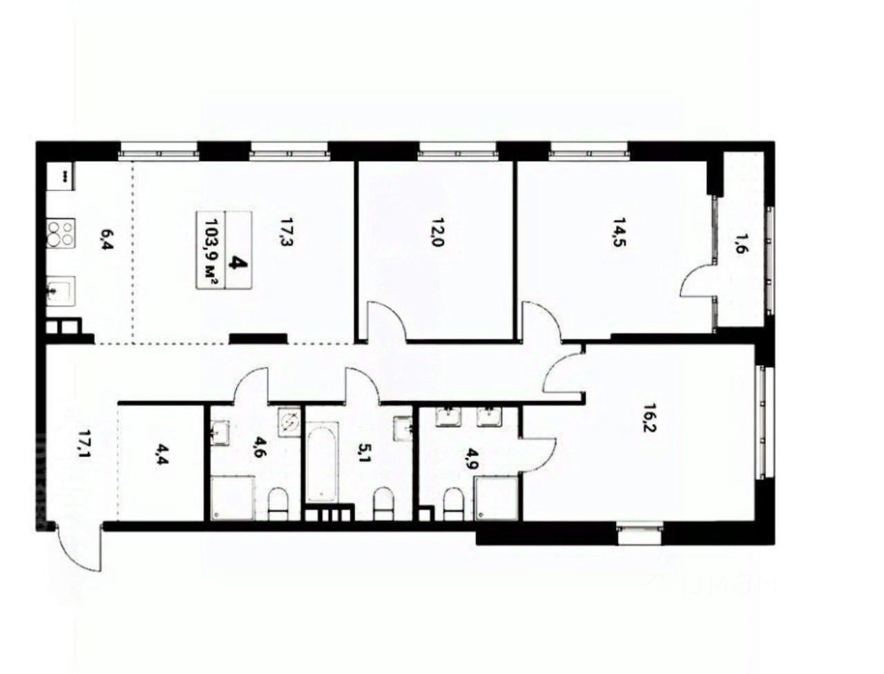 Представляем вашему вниманию просторную четырехкомнатную квартиру в новостройке с огромной кухней-гостиной и тремя отдельными спальнями в отделке whitebox .