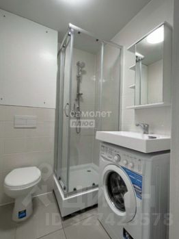 Оборудованный санузел: Душевая кабина и стиральная машина.
