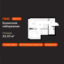 Продаётся 1-комн. квартира площадью 33,2 кв.м на 8 этаже 16 этажного дома (Корпус 2.6/1.5, Секция 5) проекта ПИК Бунинская набережная. Светлый просторный подъезд на уровне земли, функциональная планировка, большие окна, c отделкой.