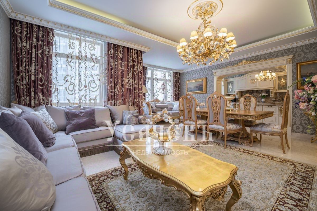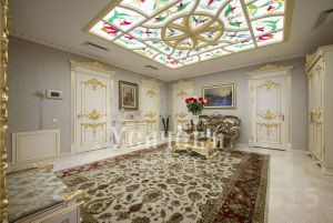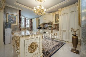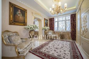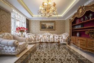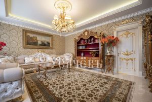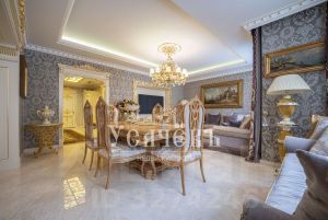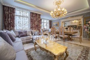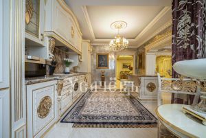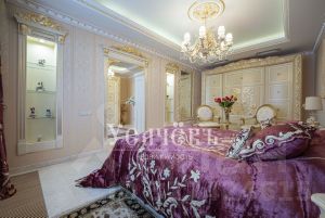 Квартира выполнена в классическом стиле с использованием эксклюзивных дизайнерских решений и ручной работы.