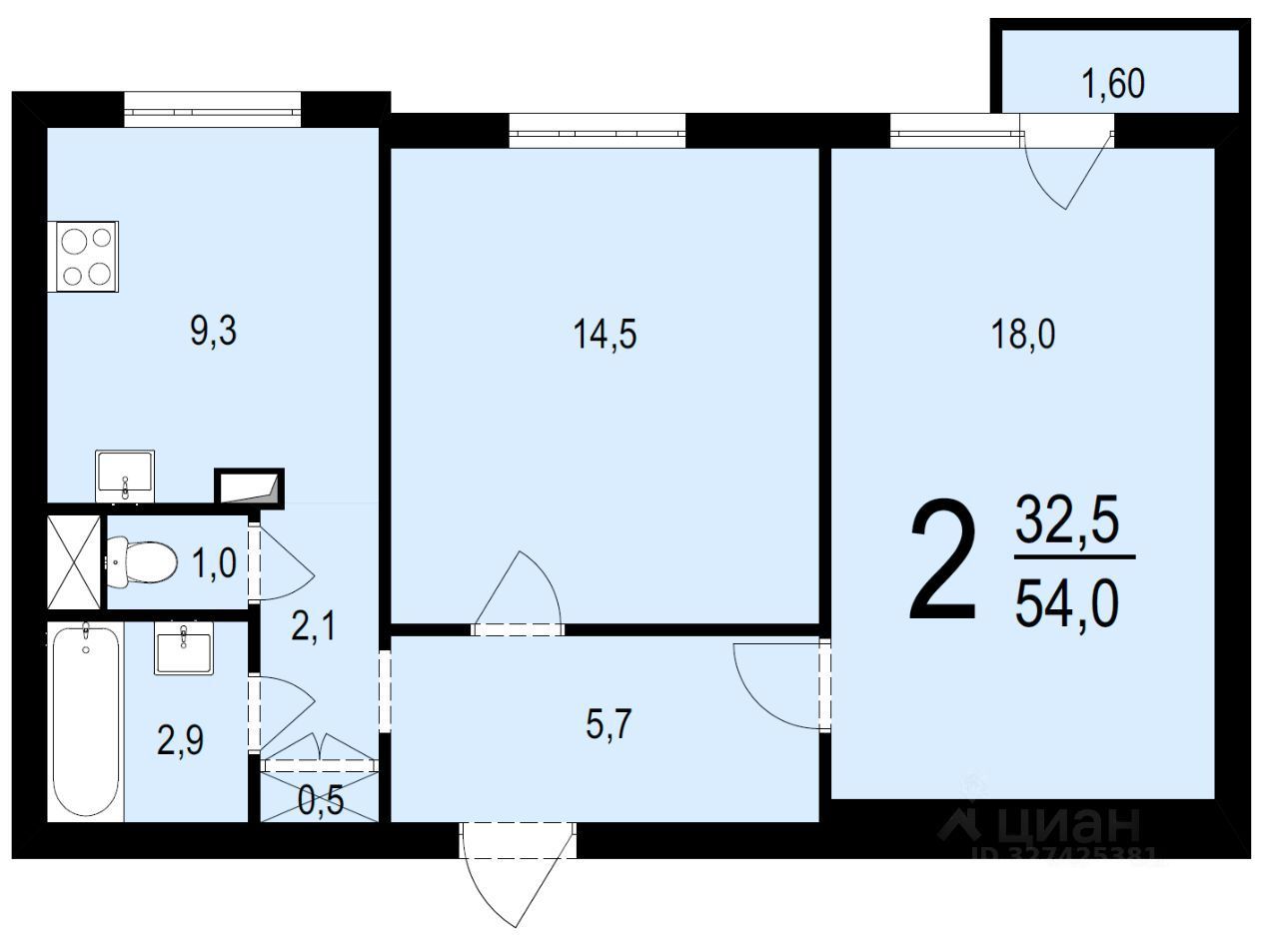 54 м²