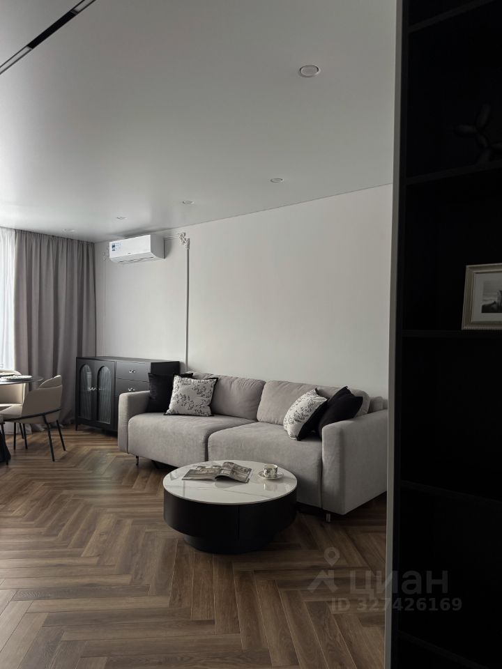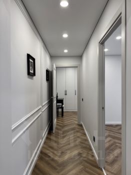 Натяжные потолки с магнитным трековым освещением и теневым профилем, качественный износостойкий ламинат 33 класса, теплые полы с сенсорными выключателями с подключением к Алисе, сплит-система, окна рехау.