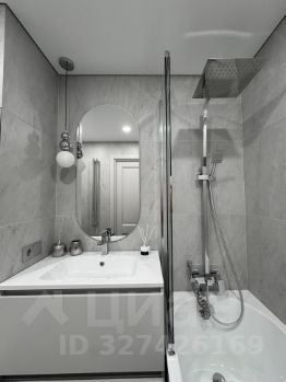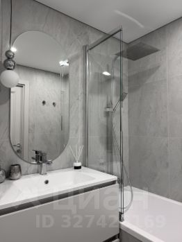 В ванной комнате установлена: ванная со стеклянной перегородкой и с тропическим душем, тумба с раковиной, подвесной унитаз и электрический полотенцесушитель с регулятором температуры и таймером.