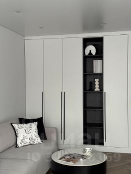 В гостиной располагается обеденная группа с точечным освещением, тв-зона, мягкий комфортный диван, который раскладывается при необходимости в полноценное спальное место, встроенный вместительный шкаф.