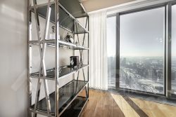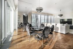 Из окон просторной гостиной открываются завораживающие виды на город. Главная спальная комната с просторной ванной комнатой и гардеробной, гостевая спальная комната с собственным санузлом, гостевой санузел.