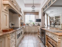 Выполнена отделка в светлых тонах в стиле Прованс. Оборудована техникой ведущих мировых производителей.