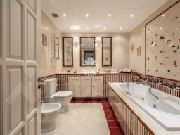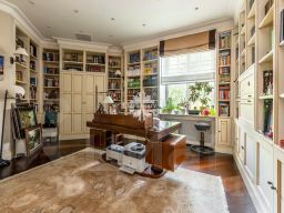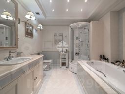 3 спальни, кабинет, 2 гостиные, кухня, 4 санузла, постирочная, гардеробные.