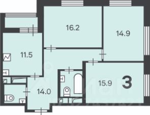 Застекленная лоджия площадью 3м² (дополнительная площадь к 79,2 м²).