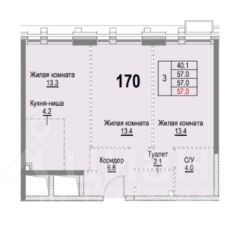 3-комн. квартира, 57 м²