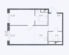 Квартира общей площадью 50,5 кв. м., жилая 27 кв. м., из них: кухня-гостиная 22,3 кв. м., мастер-спальня 12,22 кв. м., с/у 5.40 кв. м. Прихожая 7.59 кв. м., второй с/у 4.15 кв. м., высота потолков 2,92 м.