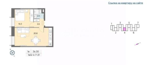 общая площадь 36,3 кв.м (еврооднушка)