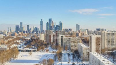 Квартира с дизайнерской отделкой расположена на 23 этаже, откуда открываются панорамные виды на парк Фили, Крылатское, МГУ и башни "Москва-Сити".
