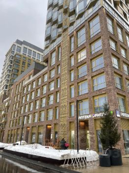 Современная и просторная входная группа. В уютном и светлом лобби обустроены зоны отдыха и ожидания, туалеты, колясочная.