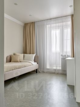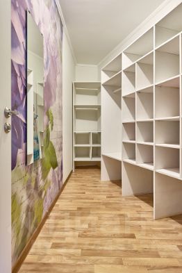 Квартира площадью 85.6 кв м, кухня-гостиная- 19,1 кв м, спальня с гардеробной площадью 15,4 и 6.0 кв м соответственно, и детская комната площадью 10.7 кв м, с видом на лес.
