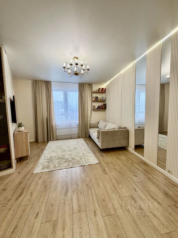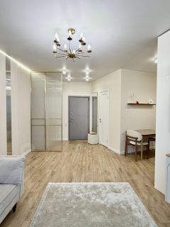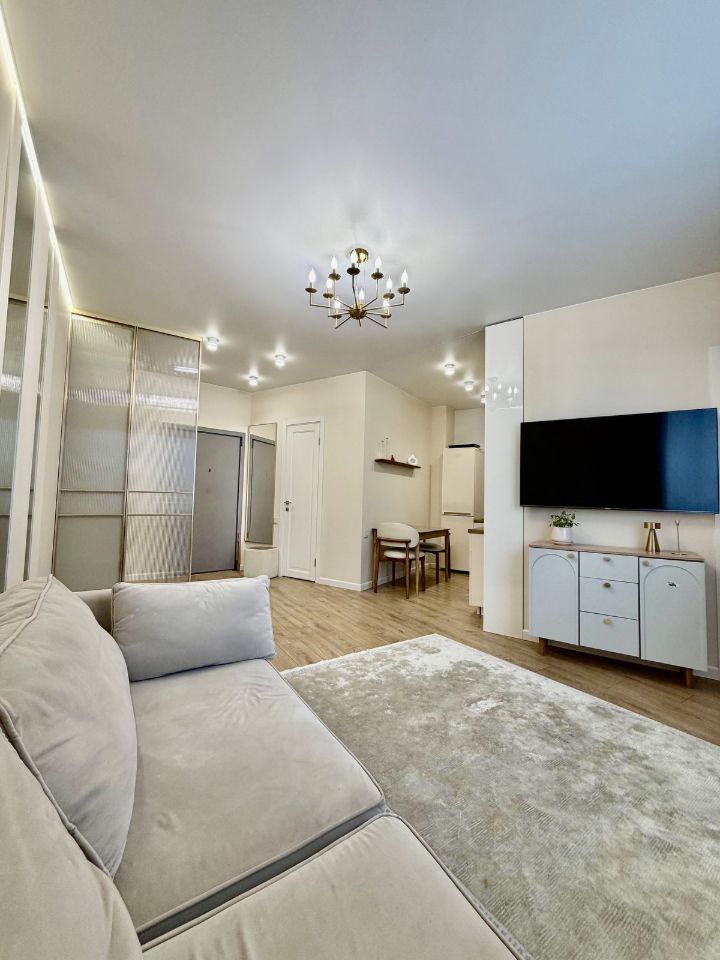 Интерьер выполнен с дизайнерским ремонтом, что добавляет уникальности и уюта. В апартаментах есть совмещенный санузел, оформленный в современном стиле, а также просторный балкон для вечернего отдыха. Все готово для комфортного проживания и не требует дополнительных вложений.