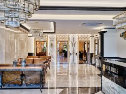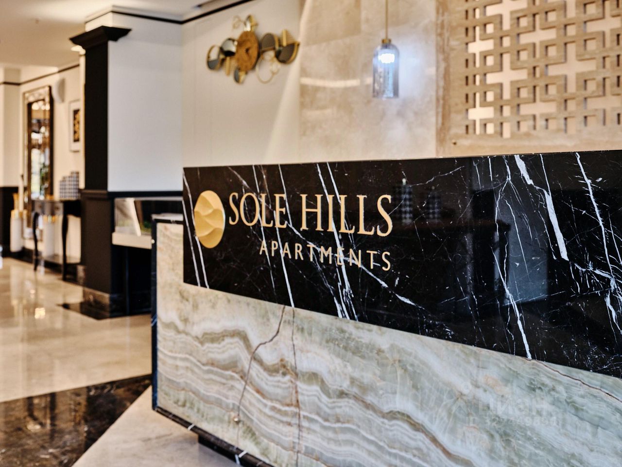 Лобби выполнены с использованием мрамора, оникса, гранита и латуни. Пространство общественных зон подчёркивает статус проекта.