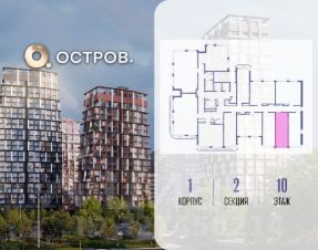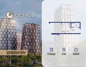Продаётся квартира от застройщика: общая площадь 28.00 м², жилая 14.40 м², кухня 5.00 м², 10-й этаж, жилой квартал "Остров 14", корпус 1 (секция 2). Срок сдачи: 2 квартал 2029 года.