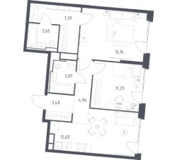 Строим кварталы для жизни с заботой о будущем. Предлагается 2-комнатная квартира бизнес-класса площадью 66,44 кв.м в корпусе 5 на 2-м этаже, в жилом комплексе "Квартал на воде".