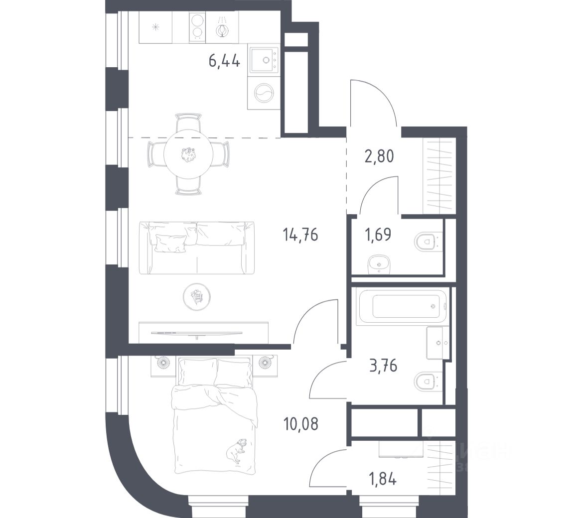 Строим кварталы для жизни с заботой о будущем. Предлагается 1-комнатная квартира бизнес-класса площадью 41,37 кв.м в корпусе 5 на 20-м этаже, в жилом комплексе "Квартал на воде".