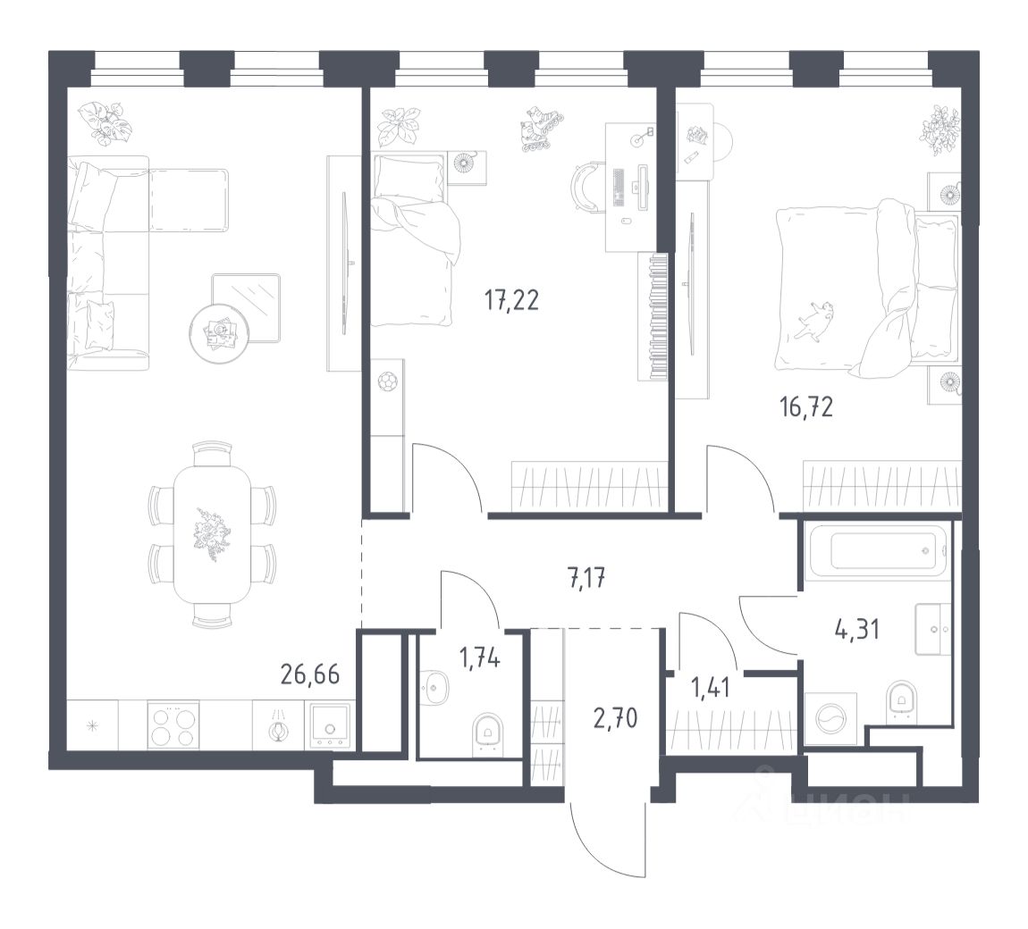Строим кварталы для жизни с заботой о будущем. Предлагается 2-комнатная квартира бизнес-класса площадью 77,93 кв.м в корпусе 5 на 18-м этаже, в жилом комплексе "Квартал на воде".
