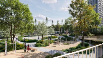 "Квартал на воде" — жилой комплекс бизнес-класса на берегу Москвы-реки, в районе Печатники. Включает дома переменной этажности, собственную благоустроенную набережную и приватные дворы-парки. Проект — пример минималистичной архитектуры от бюро Kleinewelt Architekten. До МЦД-2 "Перерва" — 5 минут пешком. В конце 2027 году рядом откроется станция метро "Курьяново".