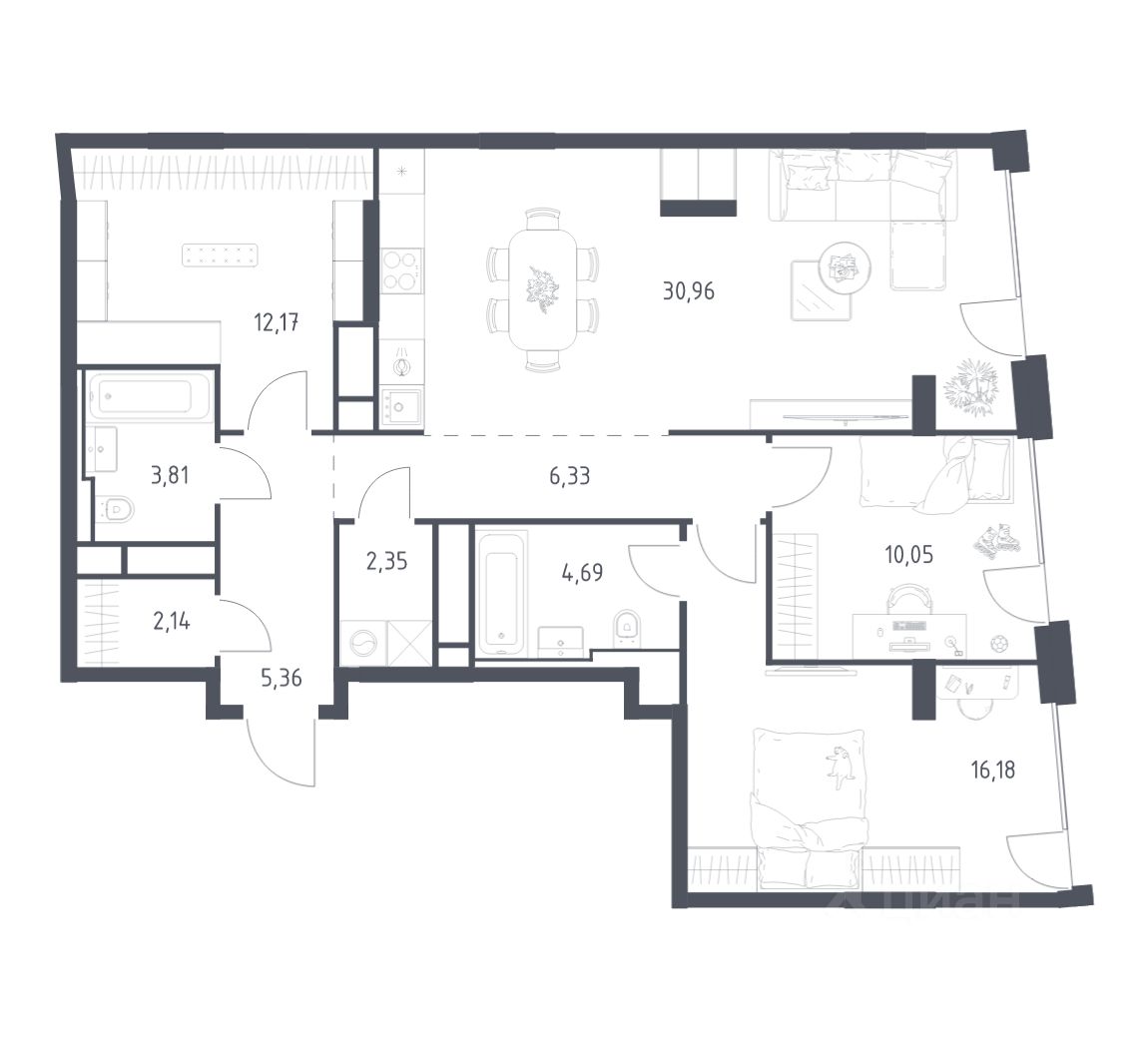 Строим кварталы для жизни с заботой о будущем. Предлагается 2-комнатная квартира бизнес-класса площадью 94,04 кв.м в корпусе 5 на 2-м этаже, в жилом комплексе "Квартал на воде".